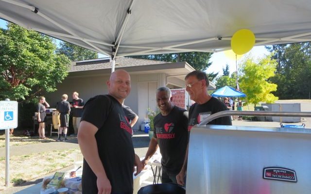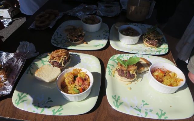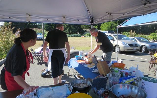 The Good Lord blessed us with a most glorious day for this event! Our chefs were all winners: David (retired Pastor David I.) for his salmon, John (musician and architect) for his hamburger sliders, and Lloyd (The Popular Schneider) won the People’s Choice award by most impressing the attendees while cooking! Sliders, salmon, and pie plus paella, a bonus from John, what more could we ask for. Along with all the good food, we had a pie auction and were all over the top with deliciousness!!